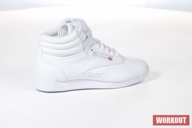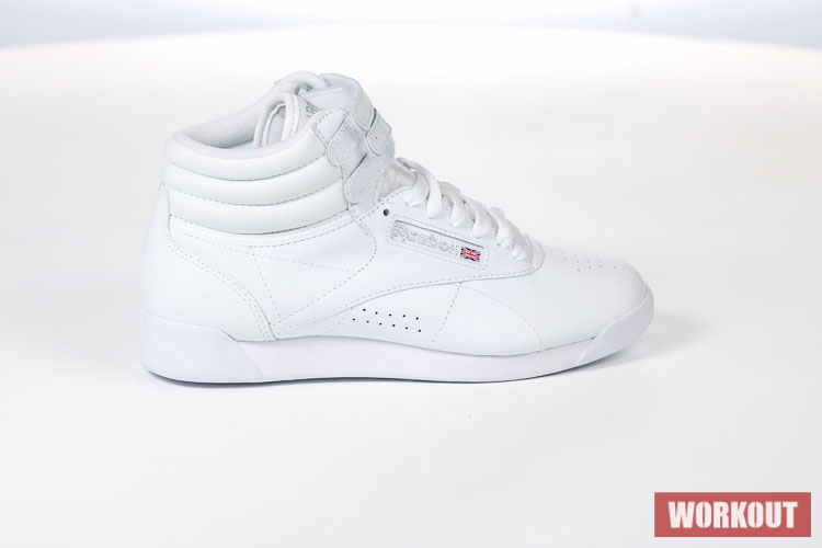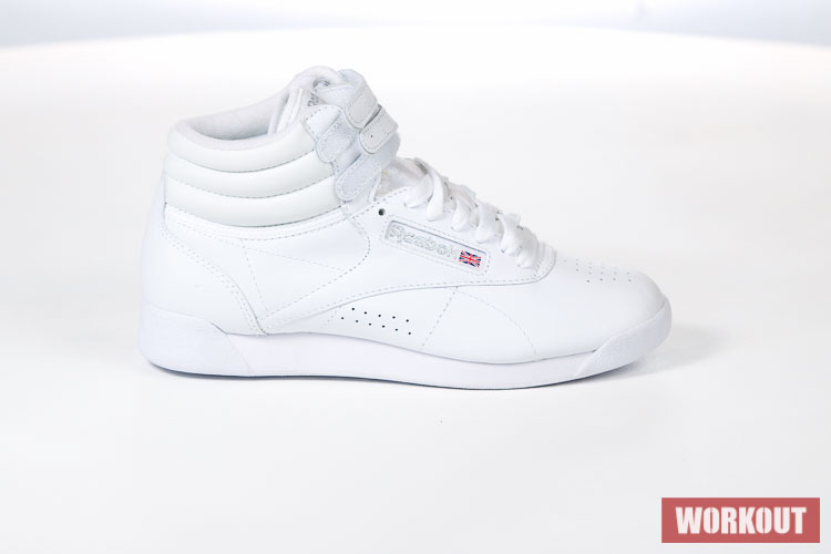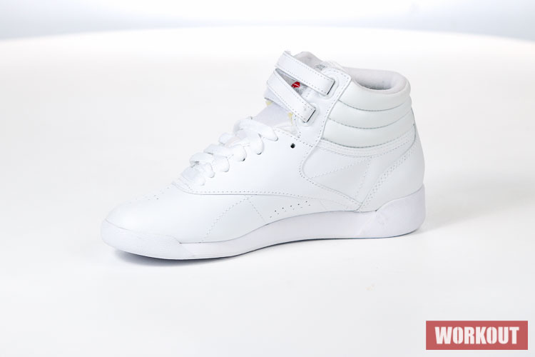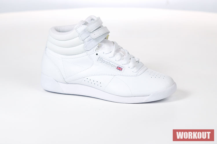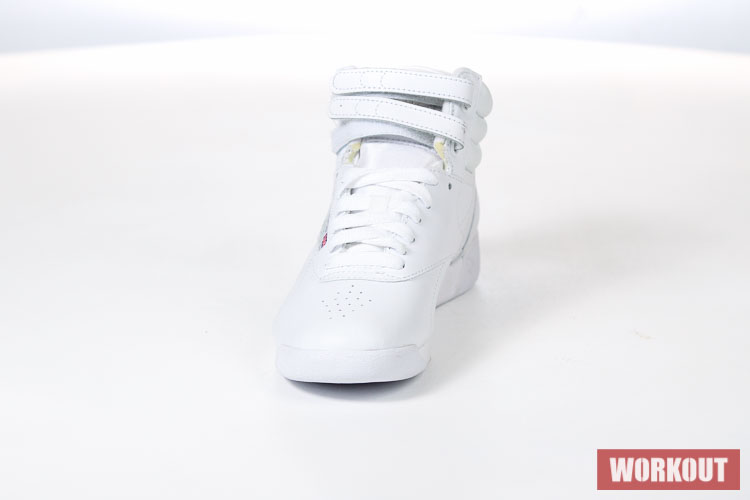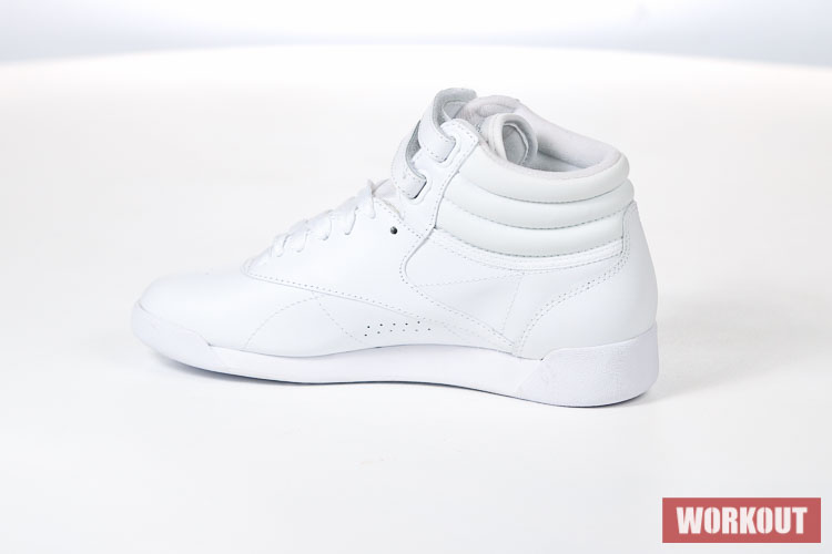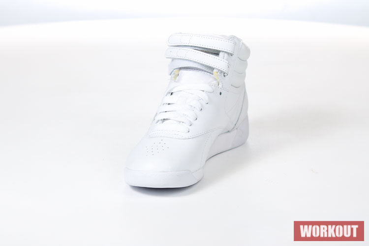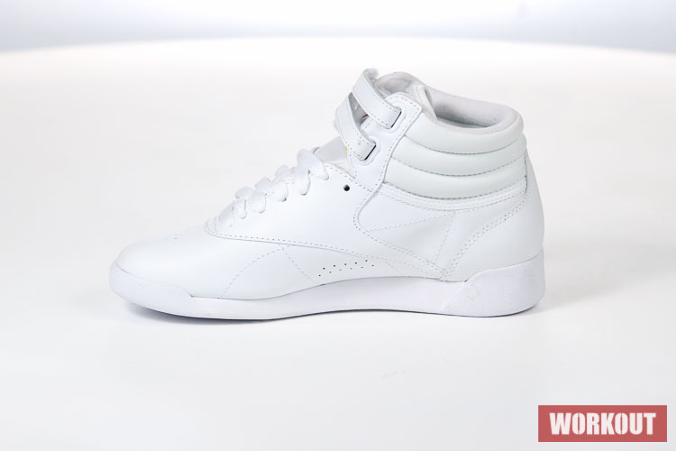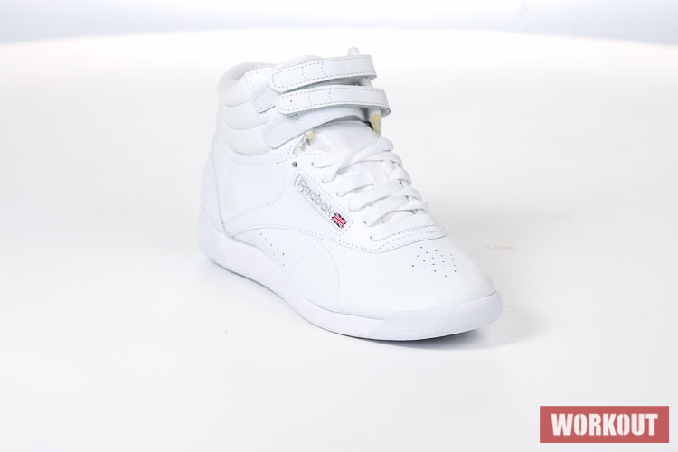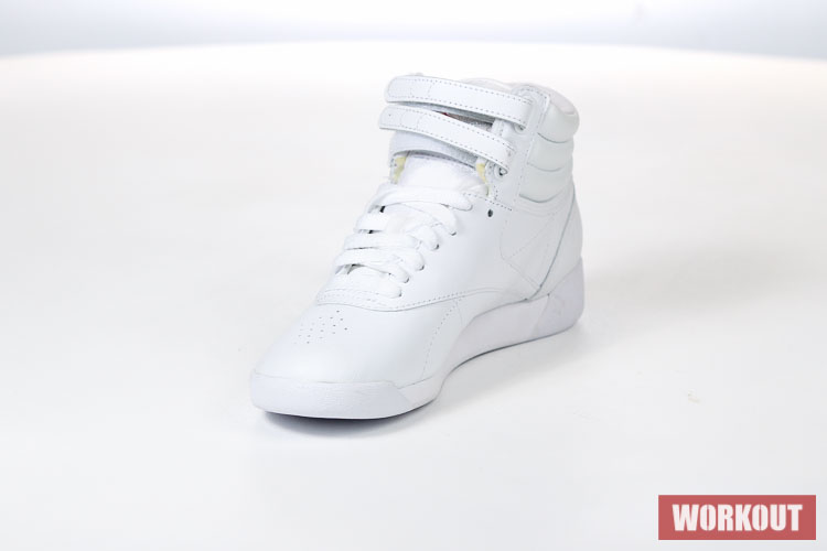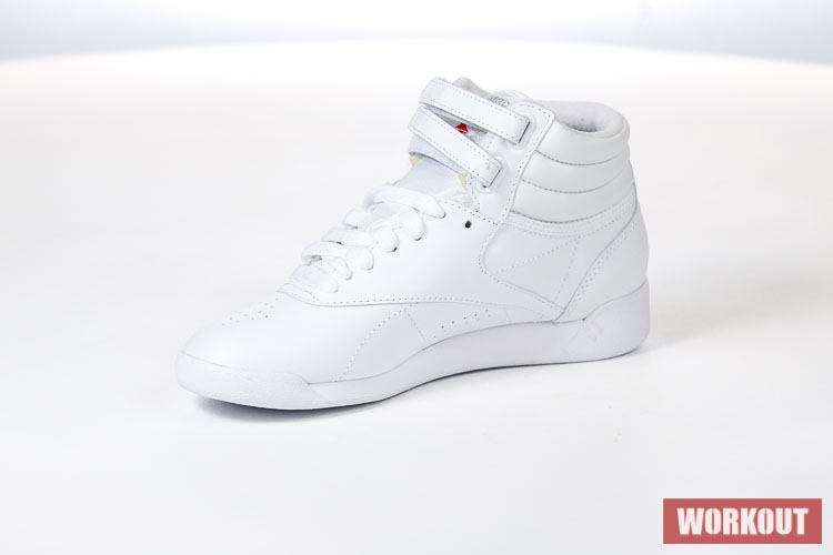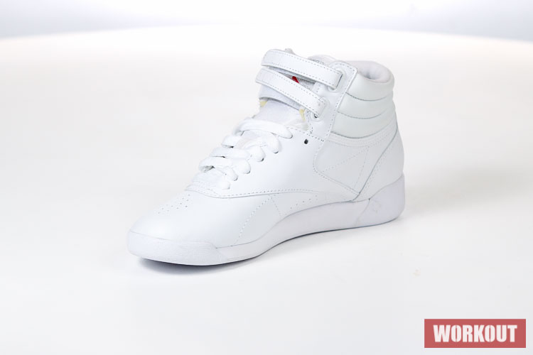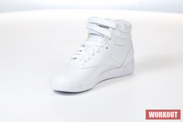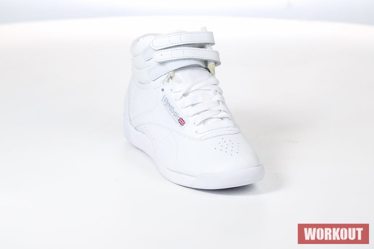 Boty na aerobik Reebok Freestyle Hi jsou vyrobeny z hovězí kůže pro maximální životnost. Podrážka je pro výborné odpružení vyrobena z EVA materiálu. Boty mají odolný kožený svršek a díky kotníkovému provedení kombinované s dvěma pásky na suchý zip tu máme perfektní botu pro aerobik.