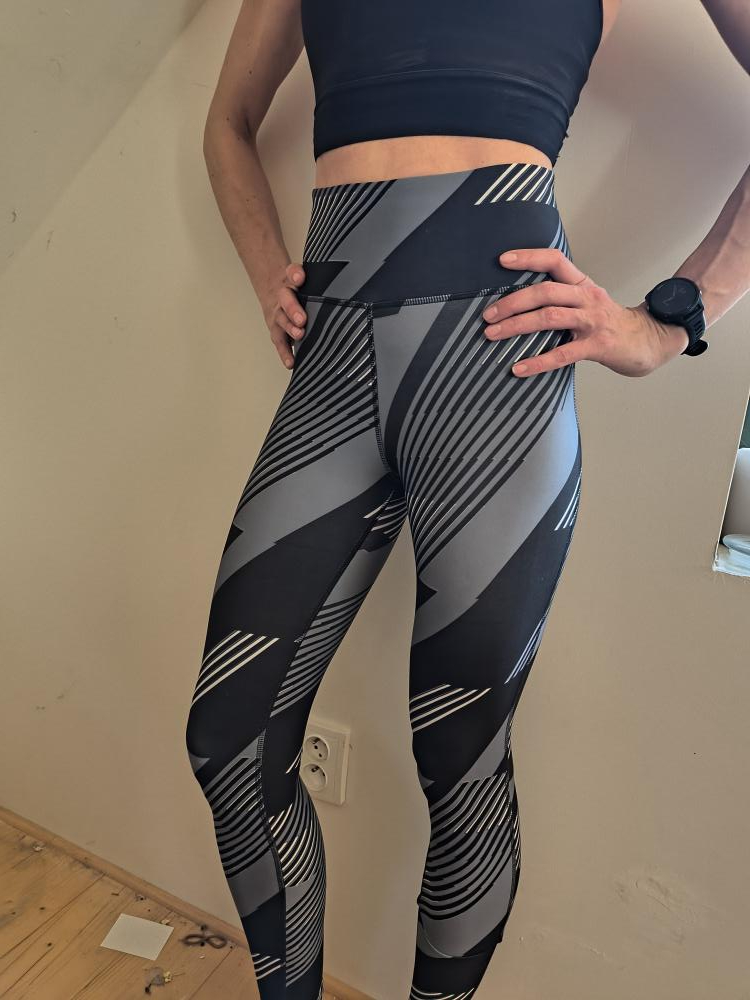 Take these womens leggings from the gym to the street thanks to the bold print and subtle branding. Shaped bonded side seams hug and smooth your curves for a flattering fit. The wide back panel protects you from abrasion during ab work and the highly mobile fabric wicks sweat for a dry comfortable feel.