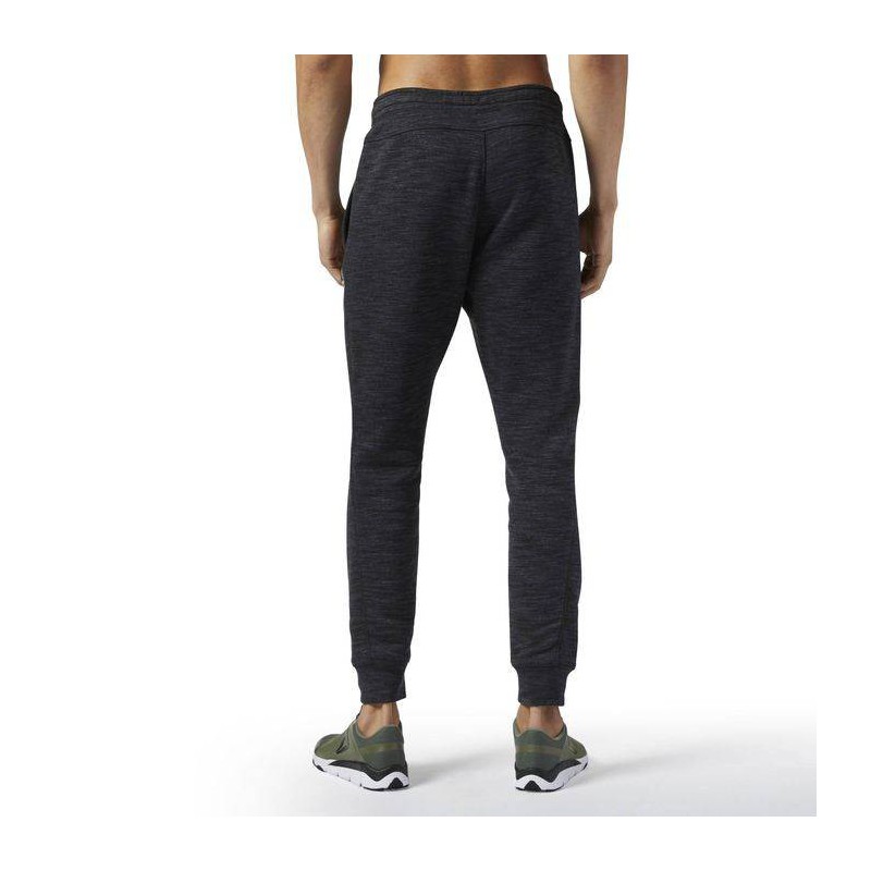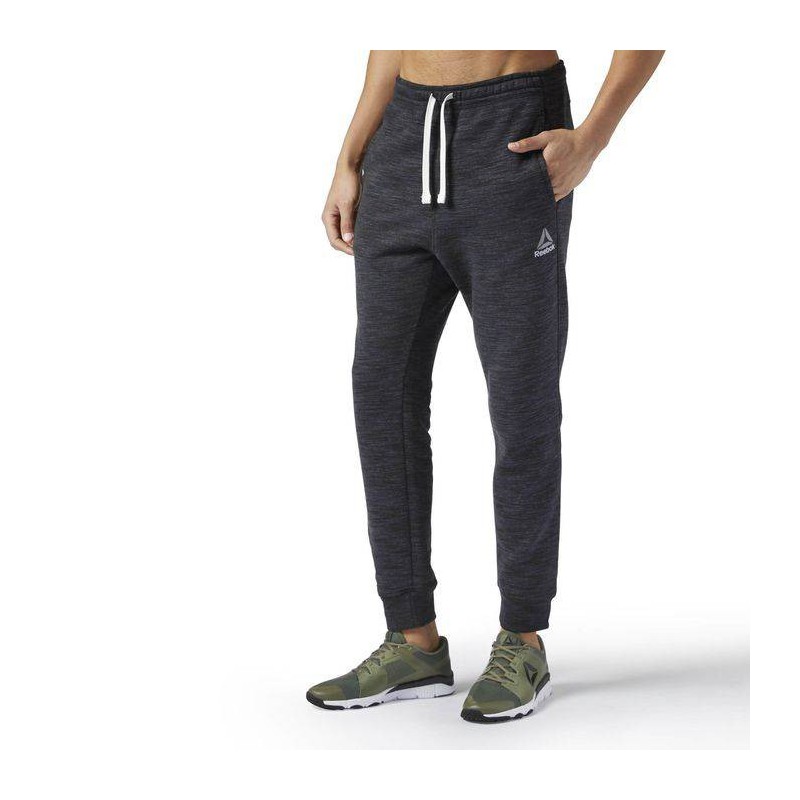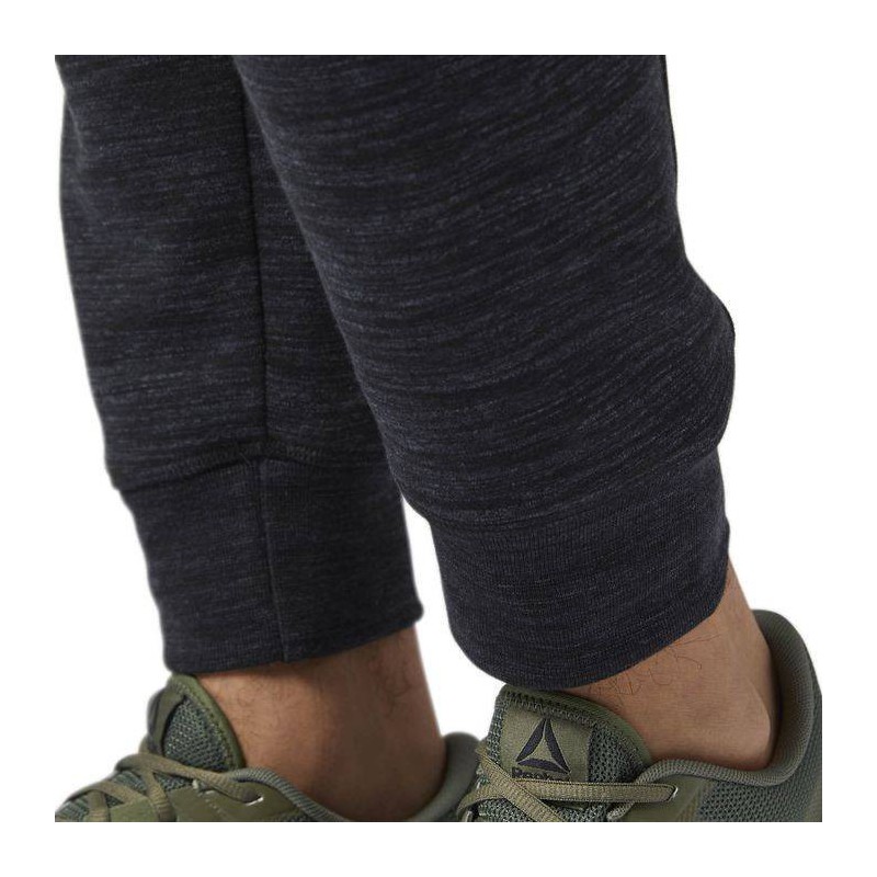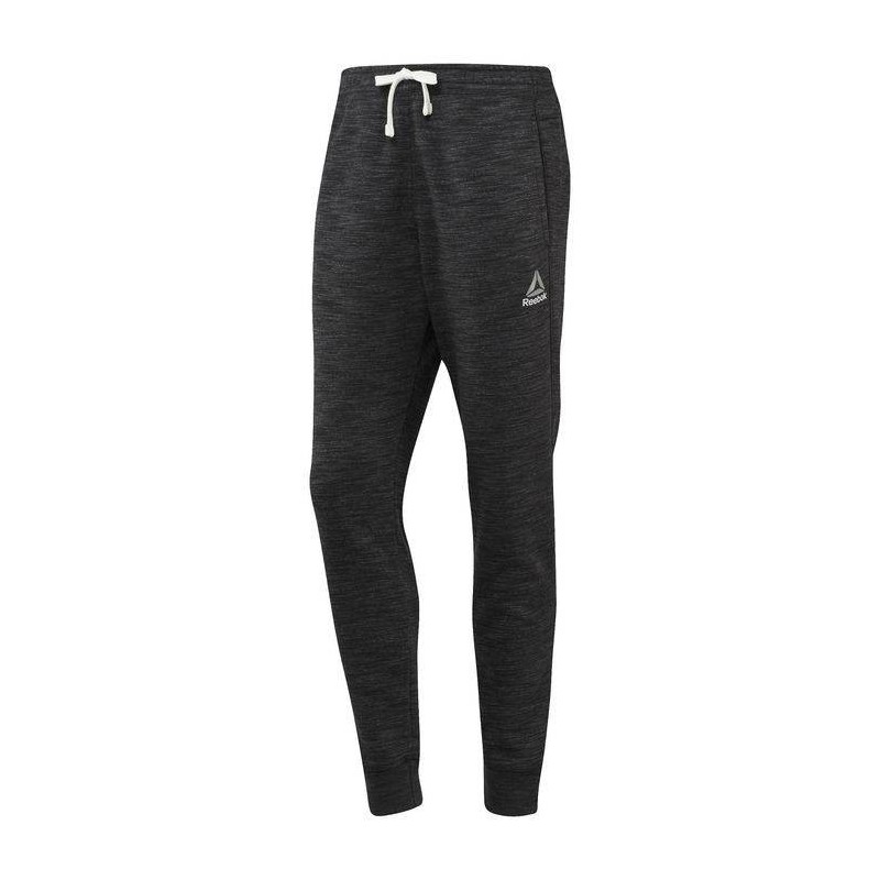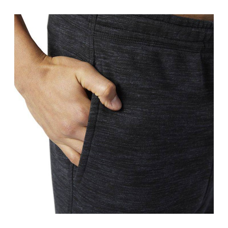 70/30 Cotton polyester fleece fabrication with marbled melange texture. External drawcord, open hand pockets with rear welt pocket. Water-based Reebok brand mark graphic for lived-in, fashionable look. Cuffed slim fit.