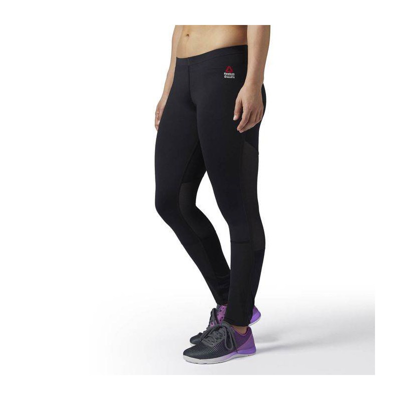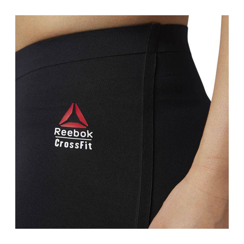 A compression tight that offers midweight compression support for your muscles. Polyester/elastane midweight compression. CORDURA woven shin panels for added abrasion protection and durability. Back mesh inserts for breathability. Flat bonded waistband and construction for comfort and prevents digging in. CrossFit-specific fit. Reebok CrossFit branding.