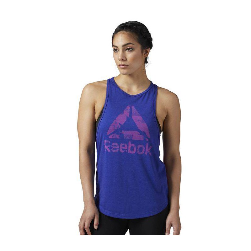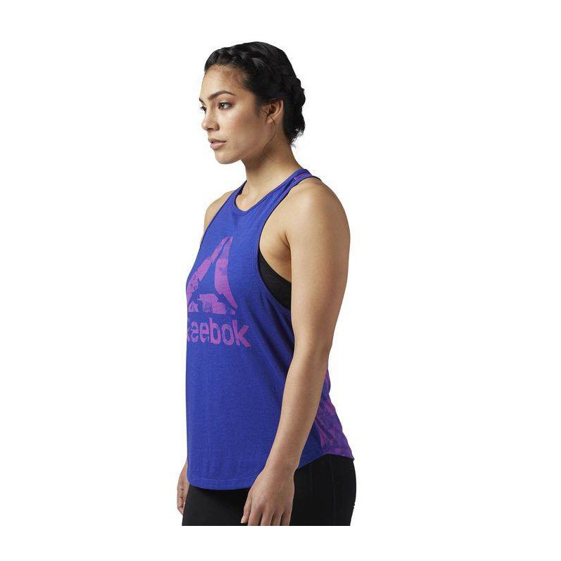 The Burnout Tank has modern style and breathability with cotton-handed comfort. Speedwick moisture management technology. Modern, slim racerback silhouette with a slightly higher neckline offers coverage andtotal mobility. All-over Photo Fold-inspired burnout pattern at back with placed Reebok Delta burnout at front.