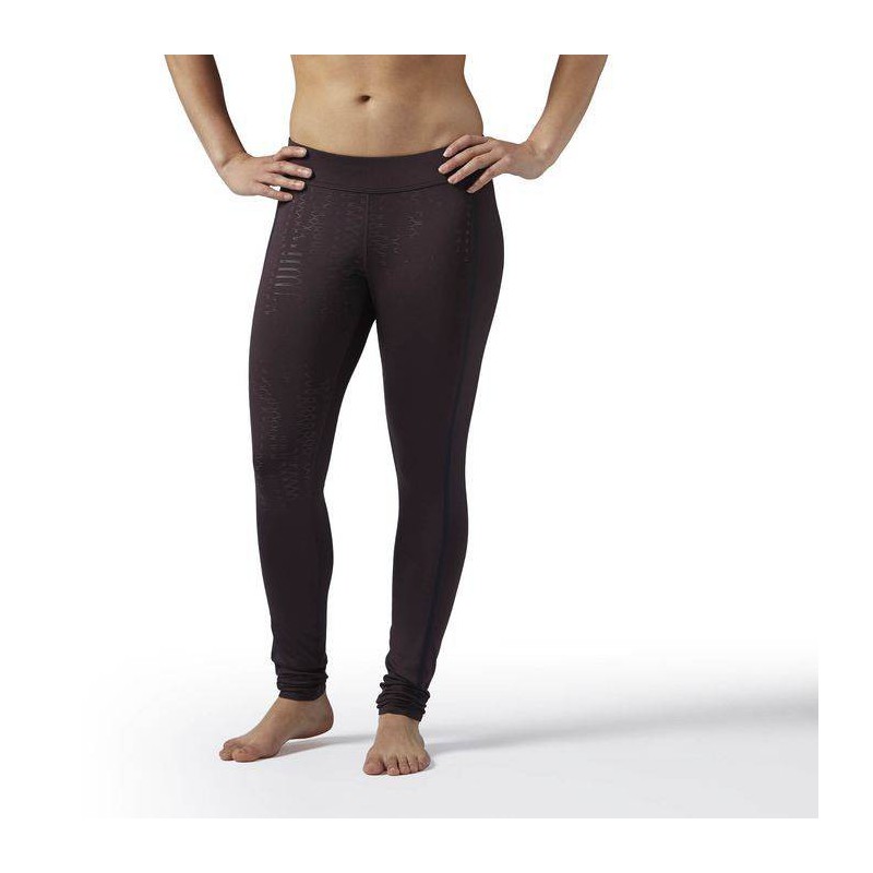 Round out your WOD wardrobe in this CrossFit staple in a tonal seasonal print. Polyester with high elastane interlock fabrication for comfort, fit and shape retention. Speedwick moisture management technology. Antimicrobial gusset for odor control. Wide back panel on waistband for an improved fit and provides an anti-abrasion zone for floor workouts and movements. Self-fabric waistban for a secure fit. Subtle branding at back of waistband allows for easy transition from the gym to the street. Pushed back bonded side seam for an ergonomic fit that flatters. CrossFit-specific fit. Placed seasonal textured print with hand-drawn graphics that mimic embossing simplicity. Reebok CrossFit branding.