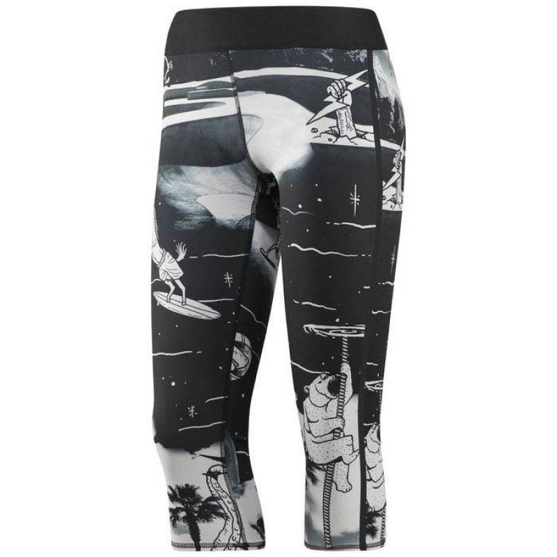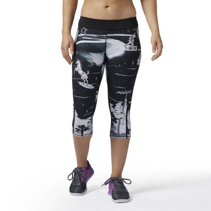 Round out your WOD wardrobe in this CrossFit staple in bold seasonal prints. Polyester with high elastane interlock fabrication for comfort, fit and shape retention. Speedwick moisture management technology. Antimicrobial gusset for odor control. Wide back panel on waistband for an improved fit and provides an anti-abrasion zone for floor workouts and movements. Self-fabric waistban for a secure fit. Subtle branding at back of waistband allows for easy transition from the gym to the street. Pushed back bonded side seam for an ergonomic fit that flatters. CrossFit-specific fit. Randomly placed seasonal Deckosphere print combining hand-drawn characters and photo real scenery, blurring the lines between space and sea. Reebok CrossFit branding.