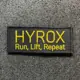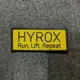 • La fascia atletica "HYROX - Run, Lift, Repeat" con velcro sul retro. Dimensioni 95 x 40 mm.